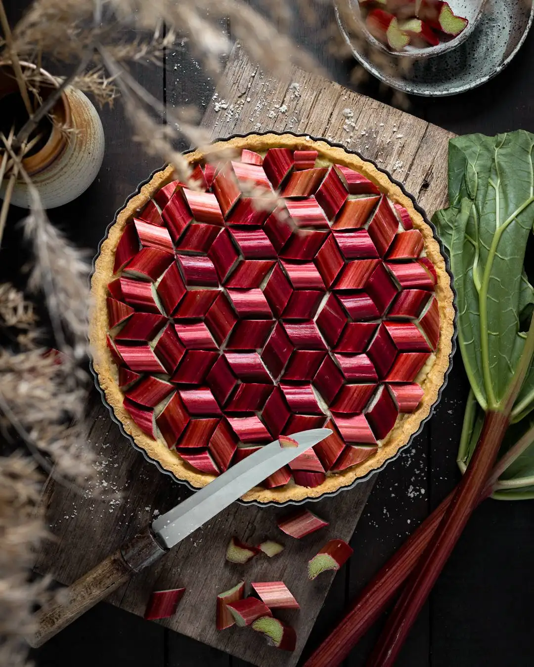 I thought I was clever when I decided to make a tart with it, and using rhubarb to create the pattern, but oh was I surprised when I realised that everything already exists on the internet…